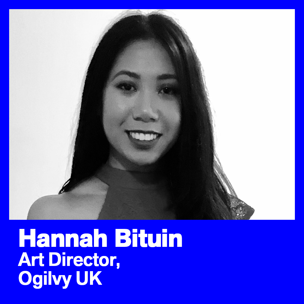 Hannah Bituin is a junior Art Director who started her career in advertising in 2017. Her experience involved creating ideas at JWT Philippines and London, VCCP, and Leo Burnett. She’s currently making great work at Ogilvy London.